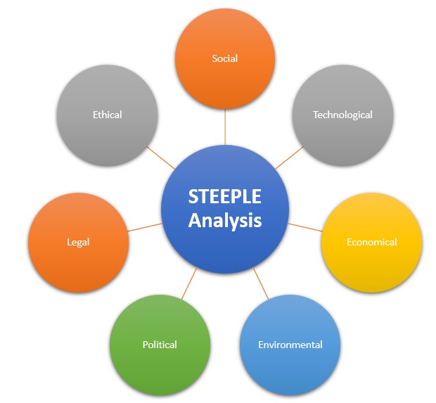 STEEPLE analysis is one of the various techniques which helps analyze the various external factors which can impact its business. Such kind of studies enable a company to evaluate their current position and the various factors which can impact their business. Since these are external factors, there is very little a company can do, but still they can prepare themselves incase any of the threats impact their business.